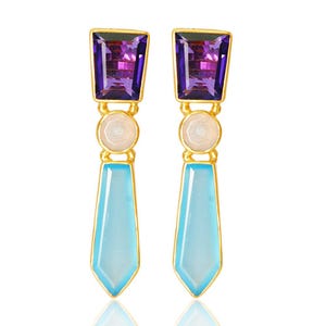 Blue CHALCEDONY Modern Gold Earrings