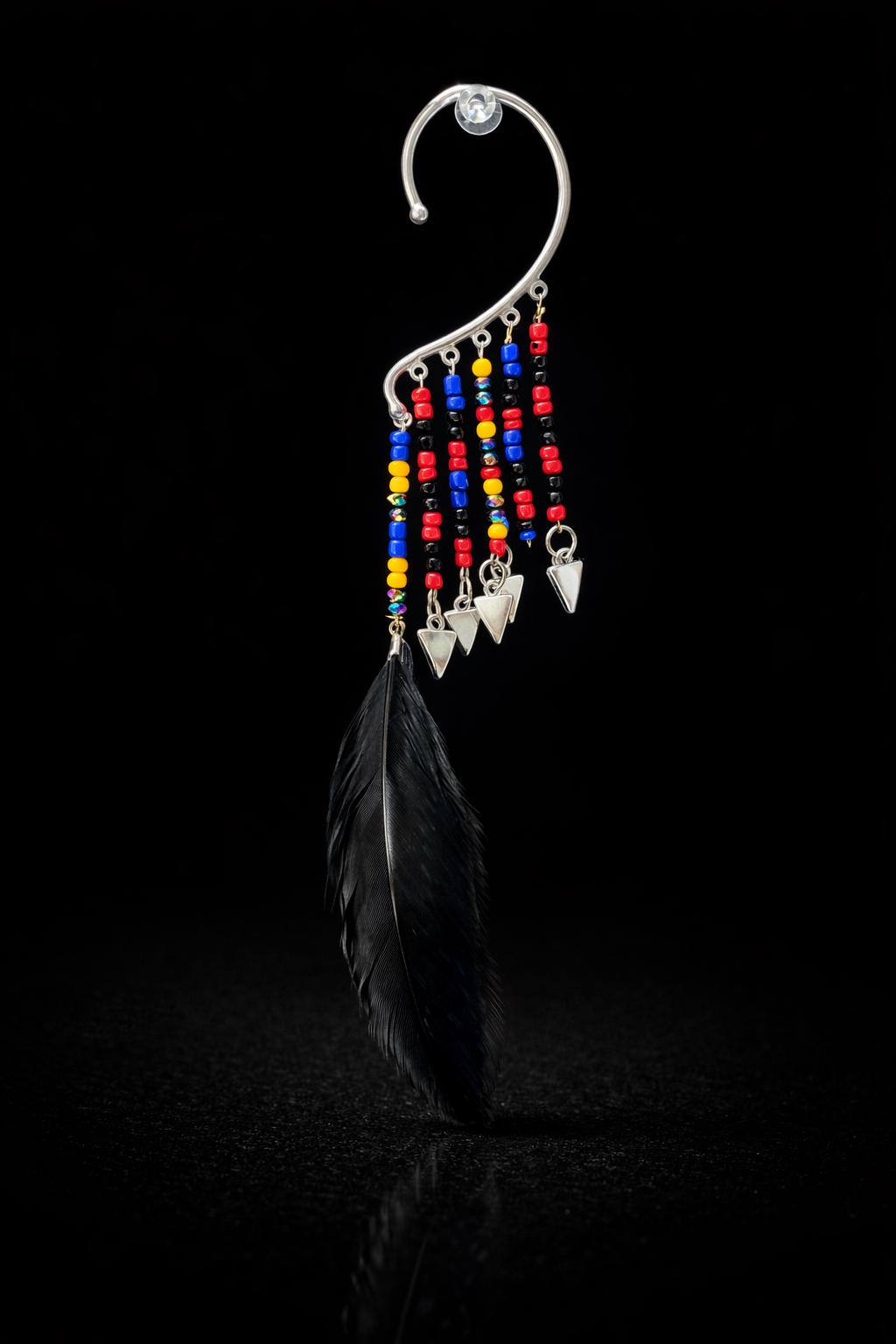 > Made with a silver plated Ear cuff black feathers.